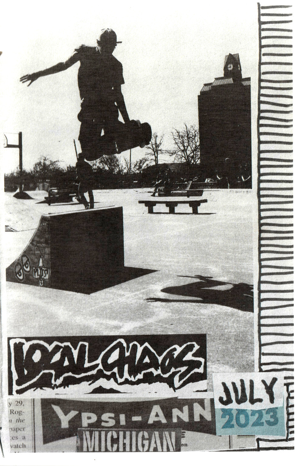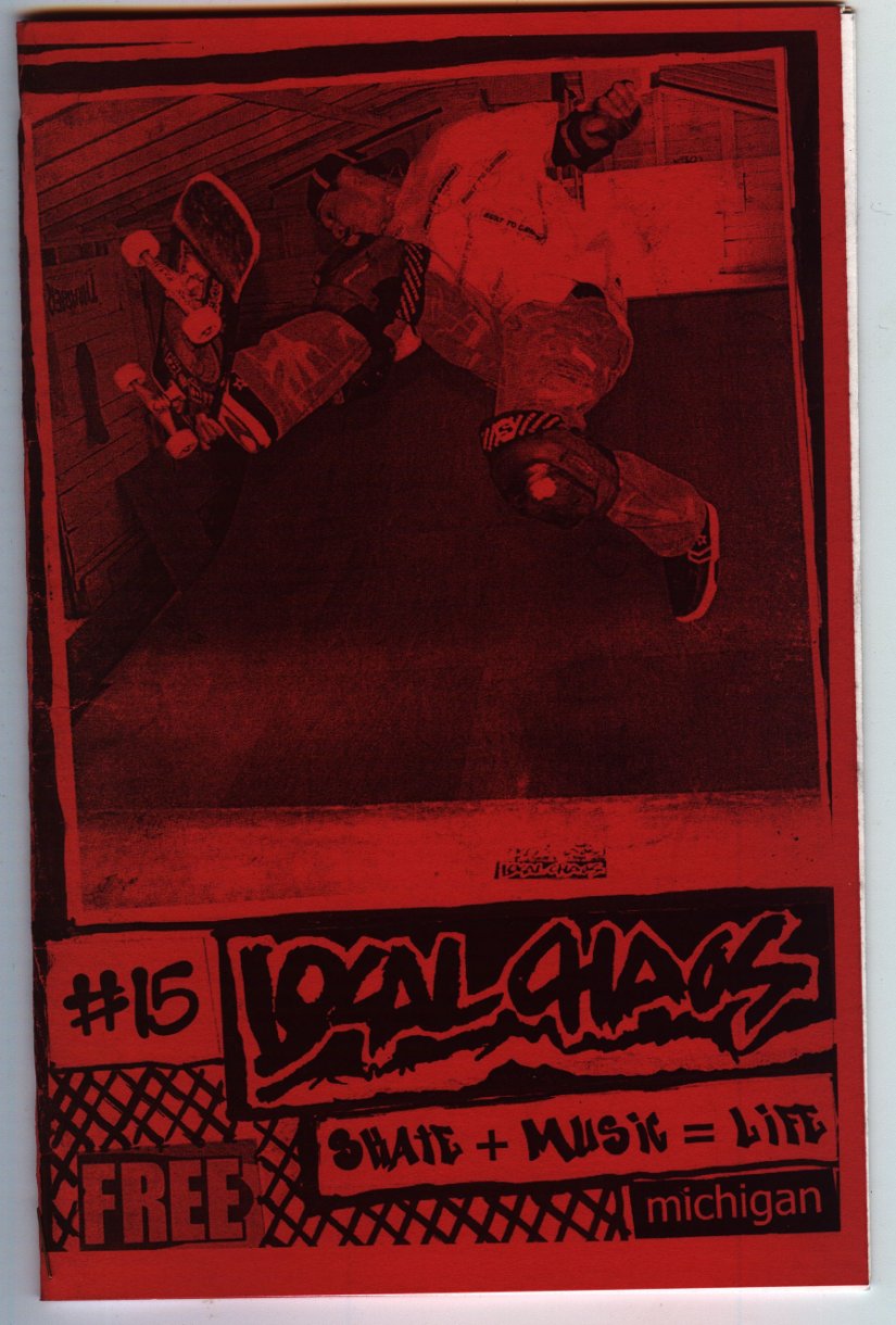 LocalCHAOS, the music zine, was trying to be a reflection of the bands we listened to, hungout with and to report on our local underground music scene. This was all made possible with the help of kids like Stephanie Watches (record reviews), Jamie Lewis, Alice Royston ("A2 Review" editor who got us some free printing), Rob Dahl (photos), Art Tendler (gave us one place to hangout), Lori Bizer (Schoolkids Records, "All Out Attack" on WCBN), Sean Carroll and Jerry Bush (JB) from "Isolated RAT Hearts" for their support. Thanks to all the skins, skaters, punks, mods, bored rich kids, homeless kids, hooligans, runaways, artists, poets and band members who gave us shit for the 'zine.